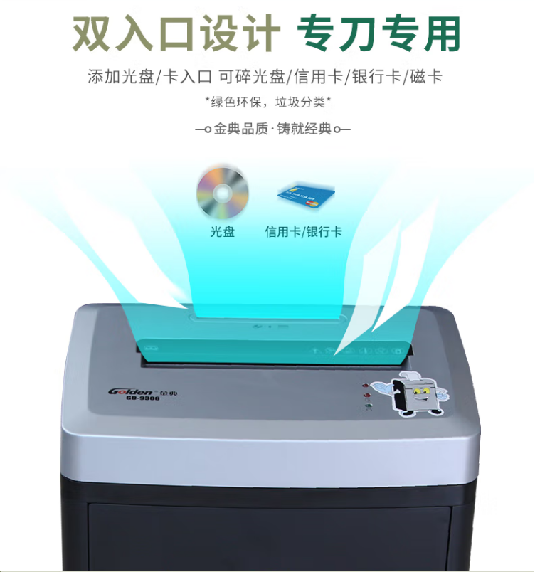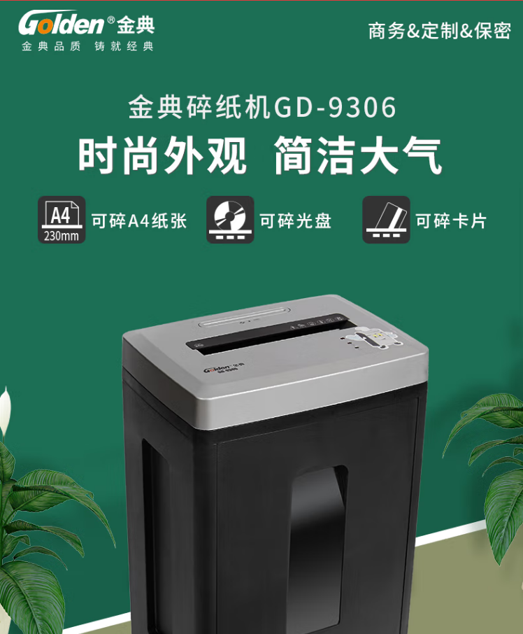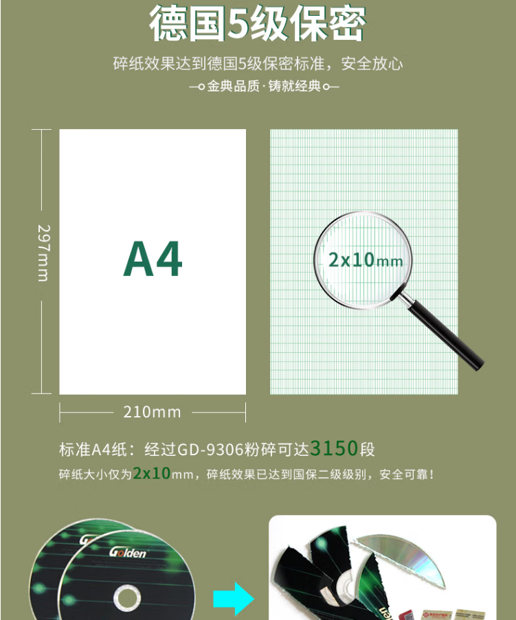 金典GD-9306 辦公5級保密A4單次6張 22L 可碎光盤